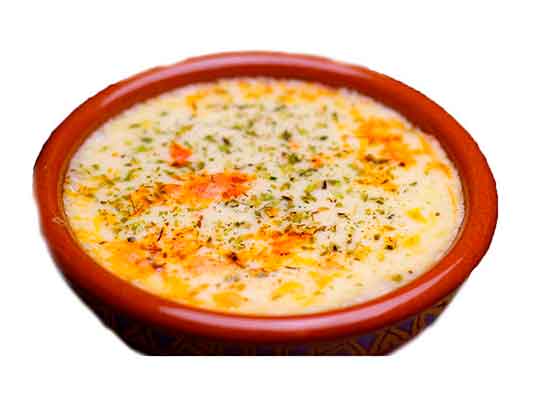 Queso provolone gratinado al horno con salsa de arándanos.