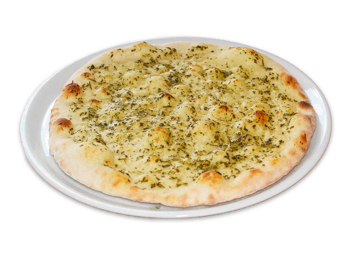 Masa de pizza con aceite de oliva, ajo, perejil y orégano.